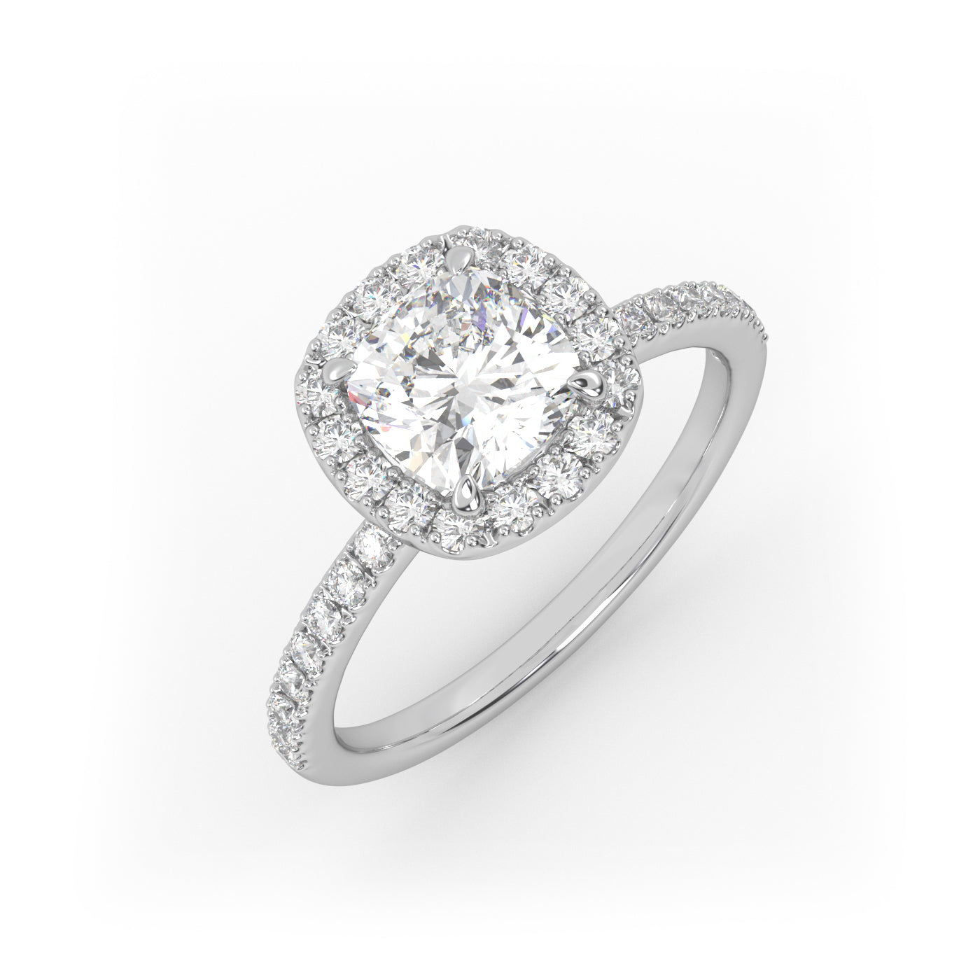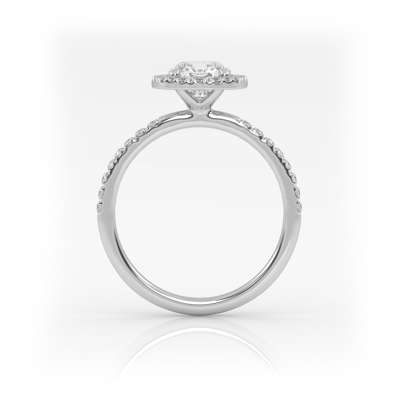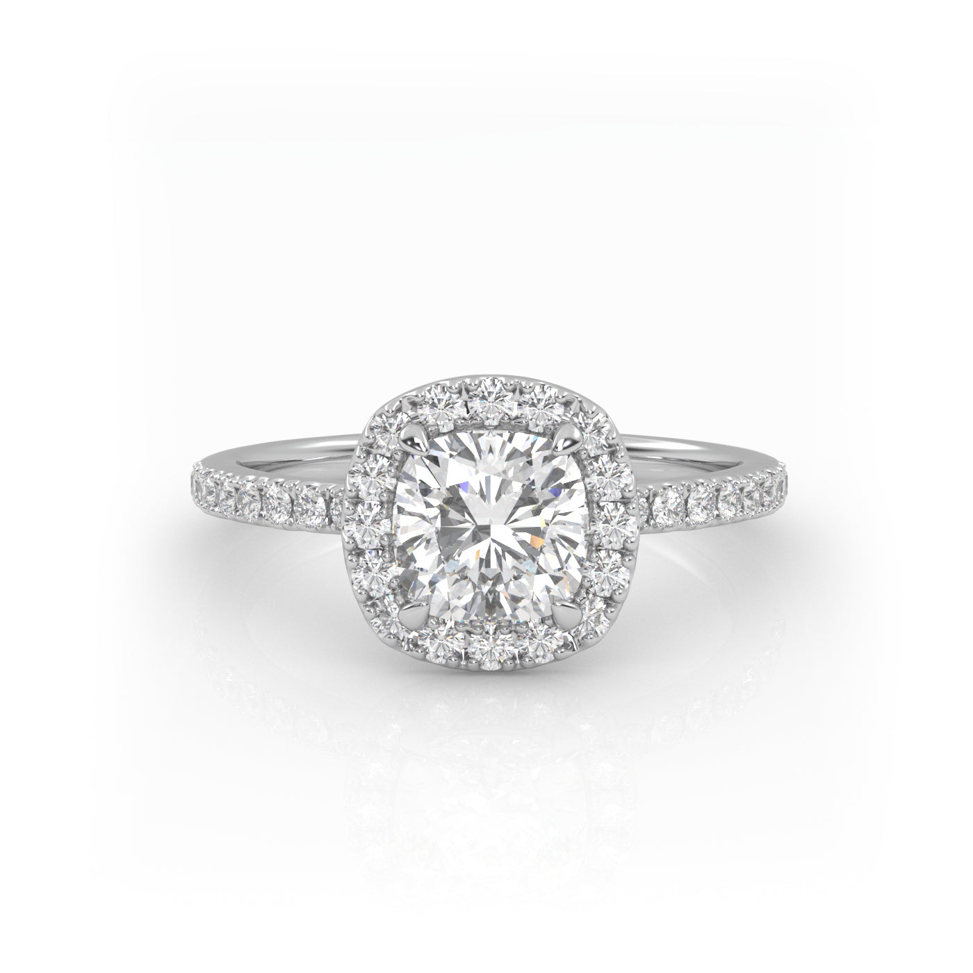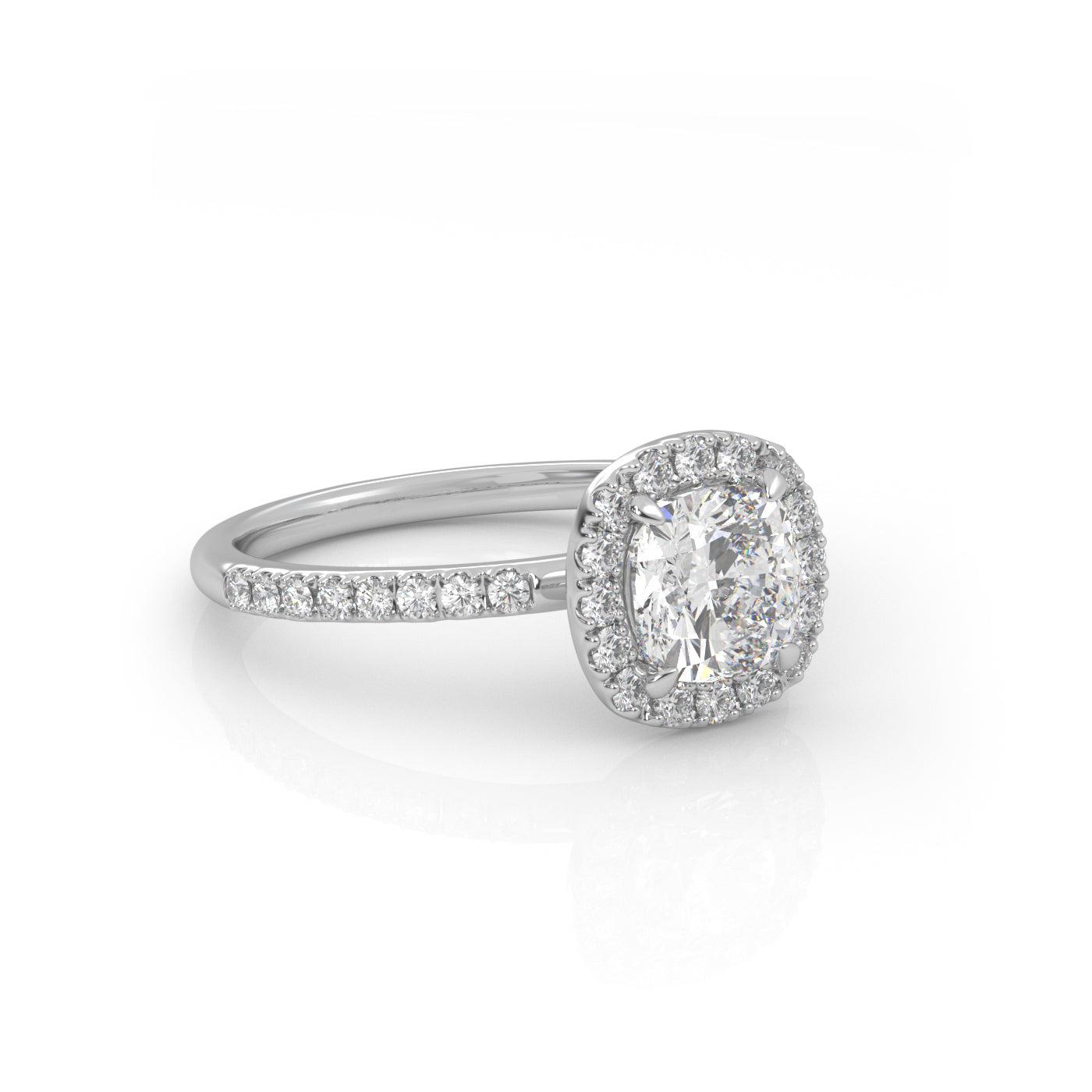 Solitaire Ring with halo & pave band The Cushion Solitaire White