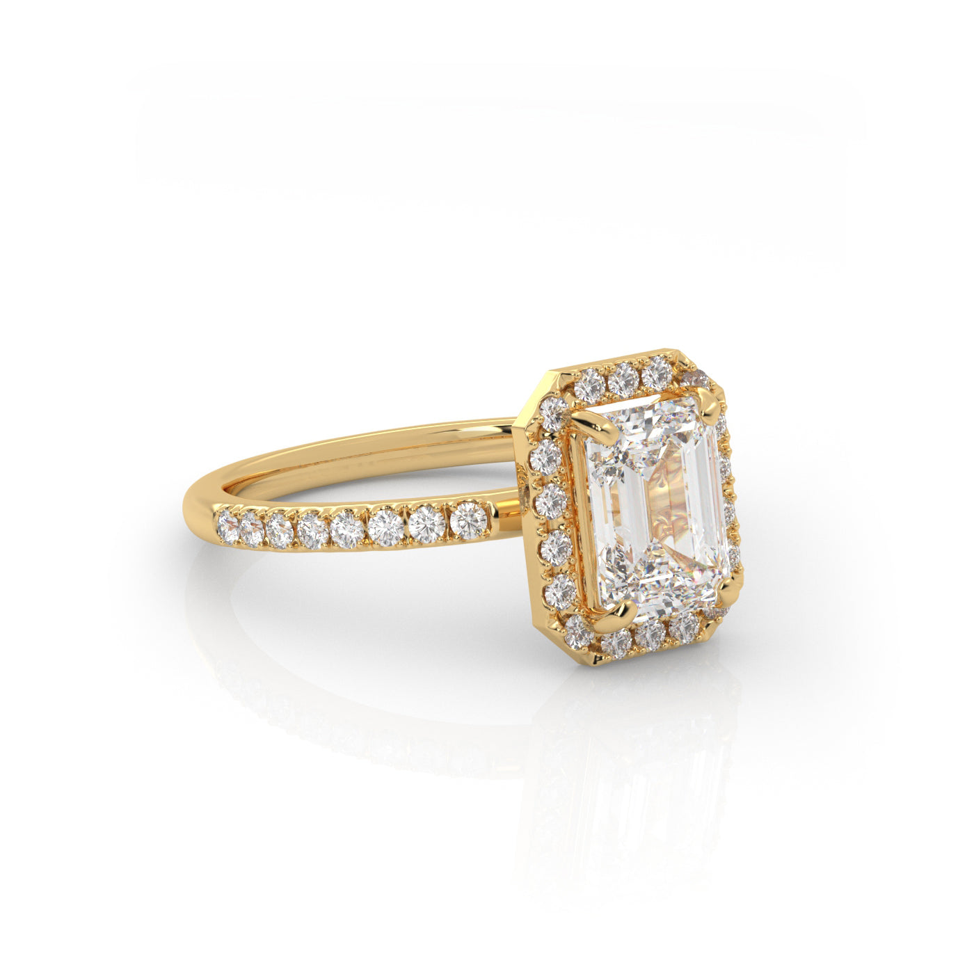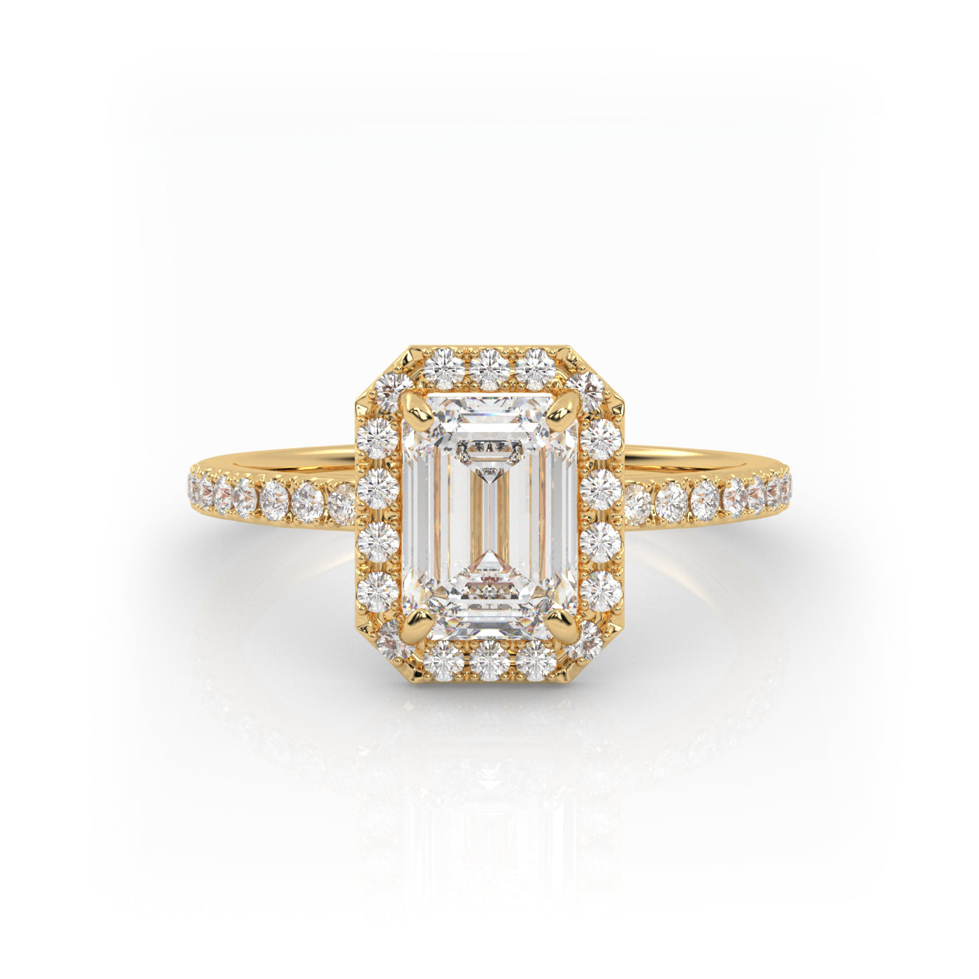 Solitaire Ring with halo & pave band The Emerald Solitaire Labgrown Diamond Color: E - VS1 Gold 18K Color: Yellow. Select your size and center diamond carat. (The picture shows a diamond size of 1 Carat). Delivered with certificate.