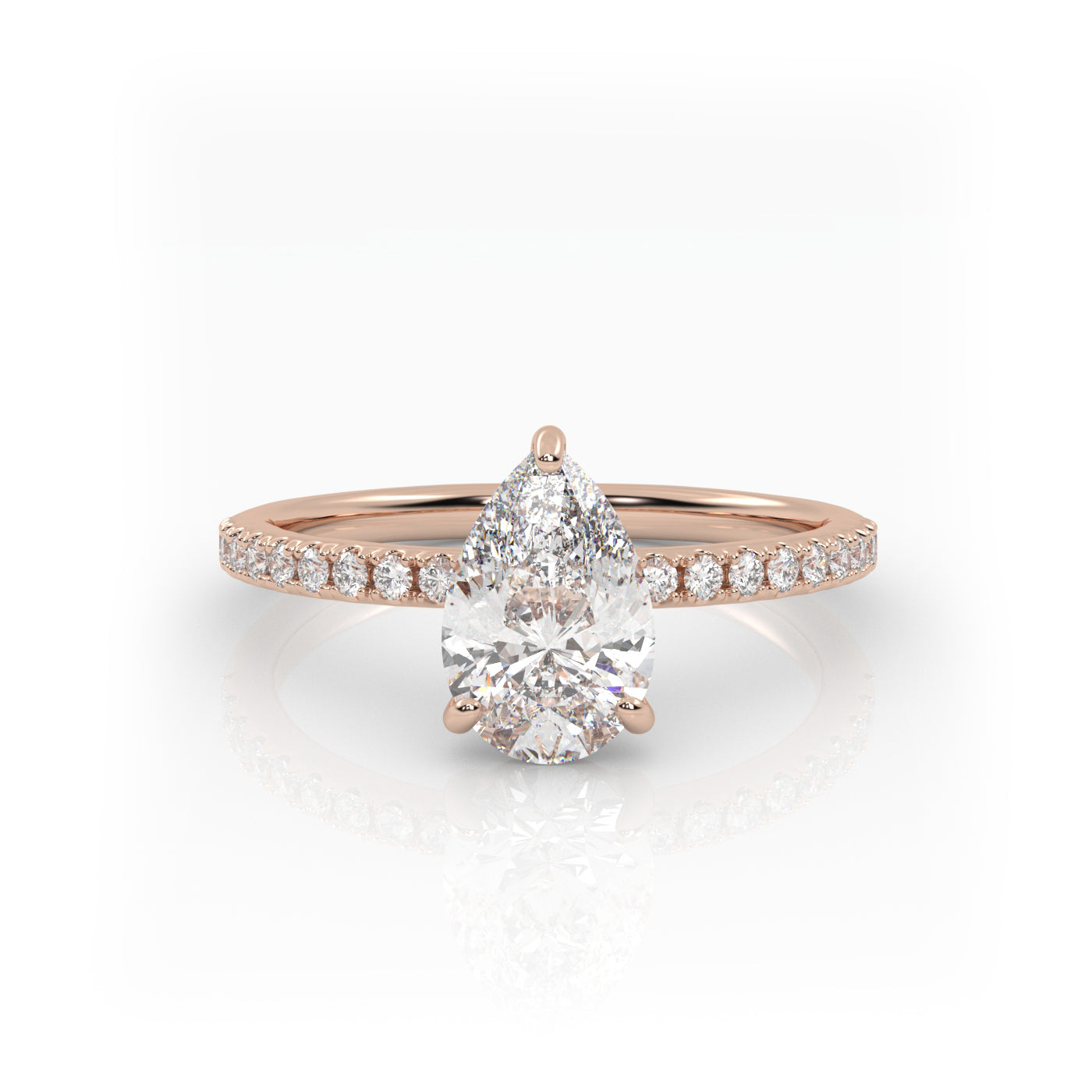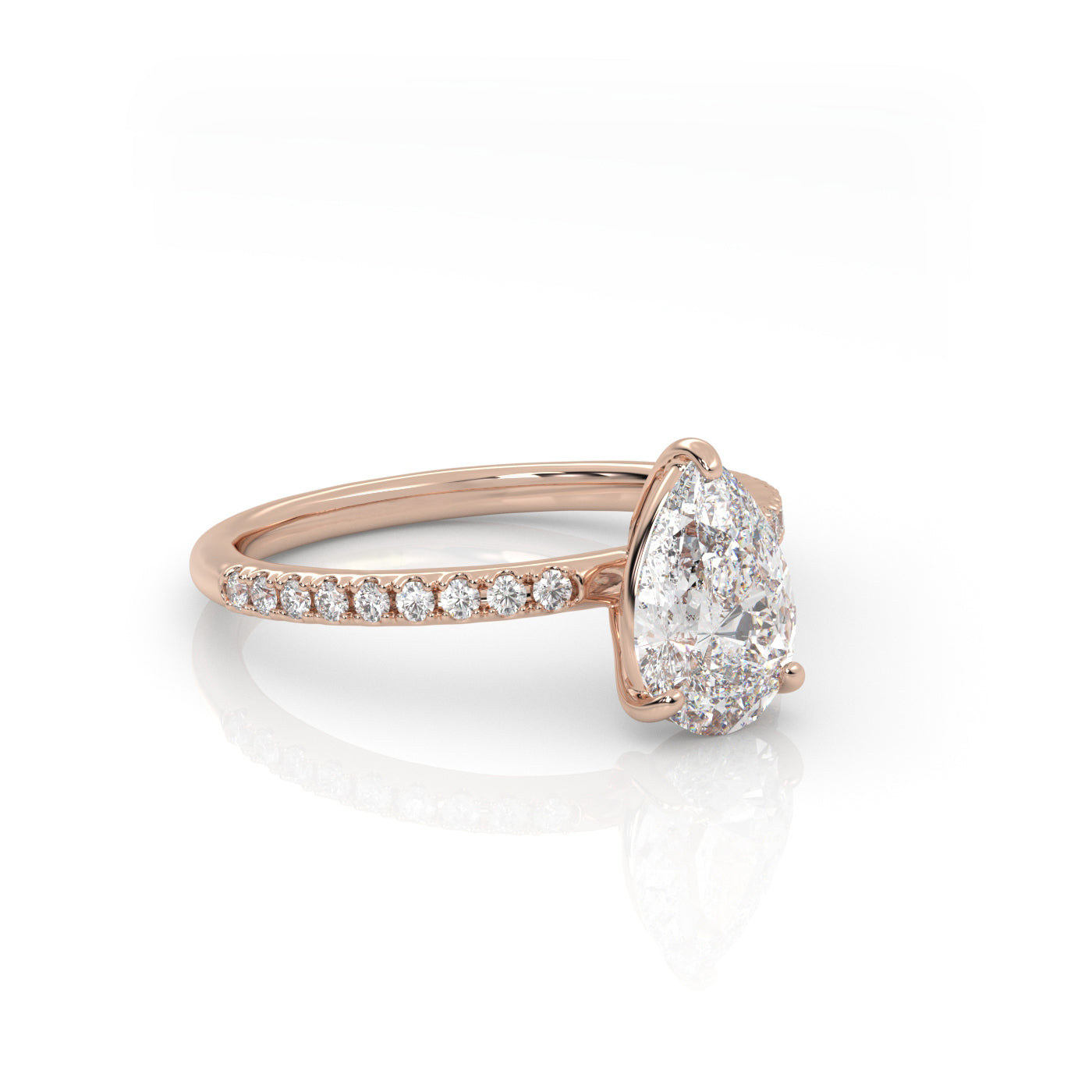 Solitaire Ring with pave band The Pear Solitaire Labgrown Diamond Color: E - VS1 Gold 18K Color: Rose. Select your size and center diamond carat. (The picture shows a diamond size of 1 Carat). Delivered with certificate.
